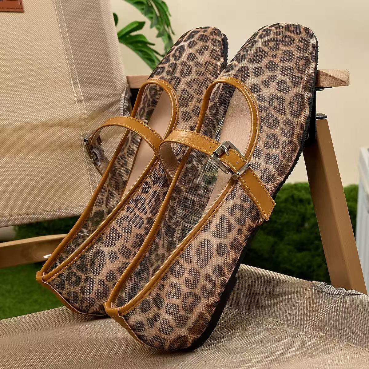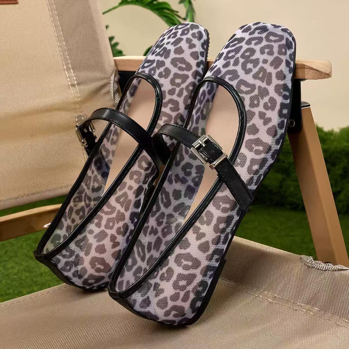 Leopard mesh ballet shoes